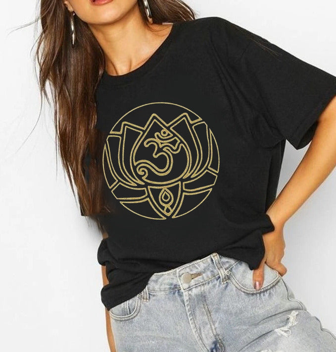 Divine Lotus | Half sleeve golden Tshirt