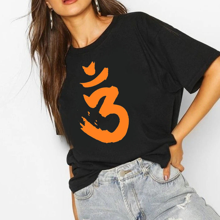 Saffron Om  | Half sleeve Black Tshirt